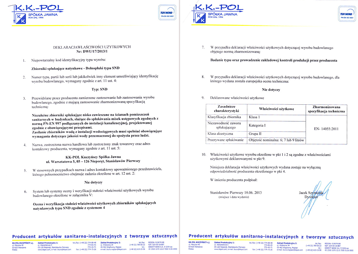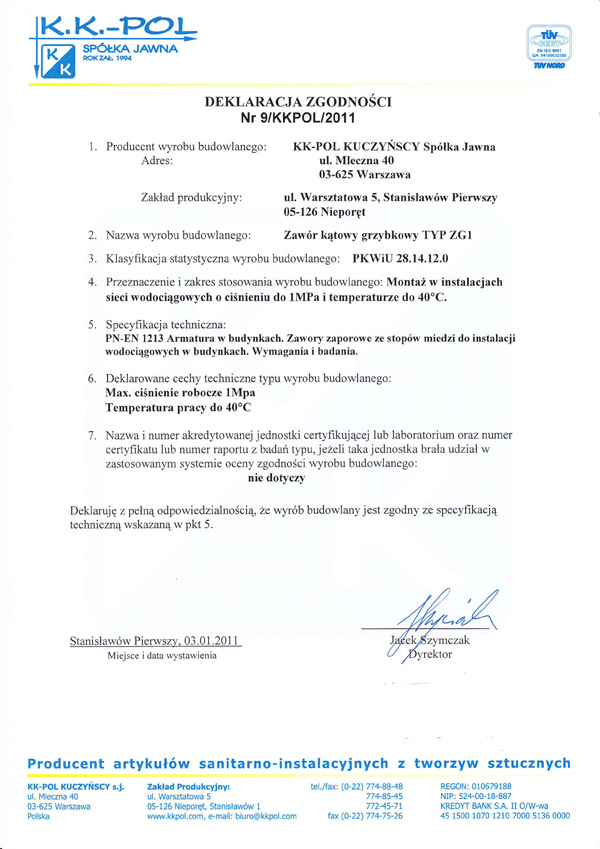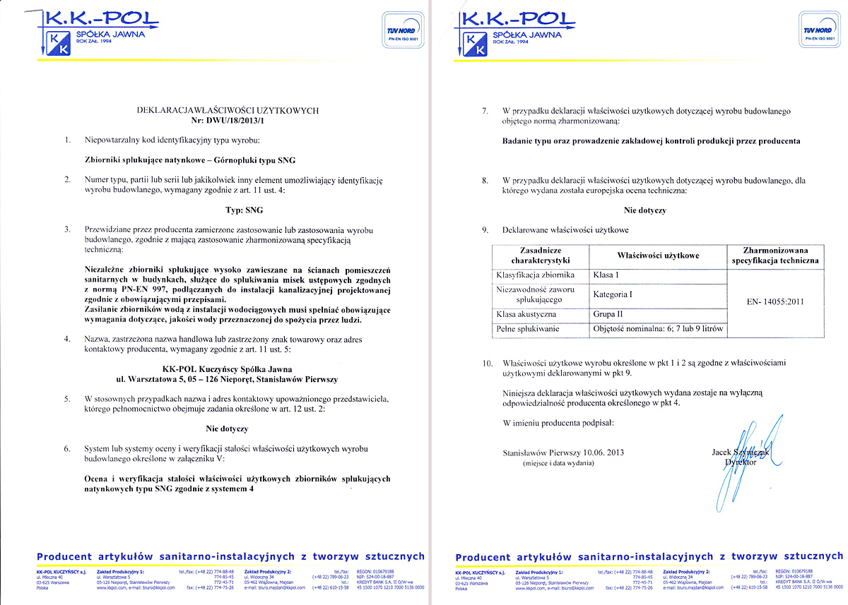 - Declaration of Conformity No: DWU/9/KKPOL/2011