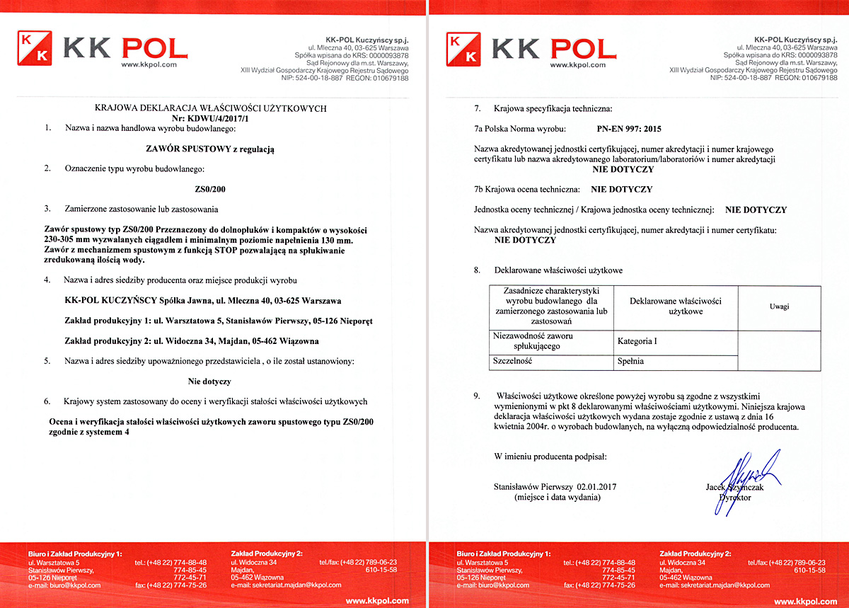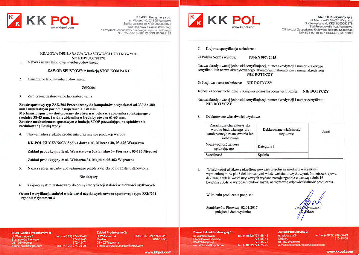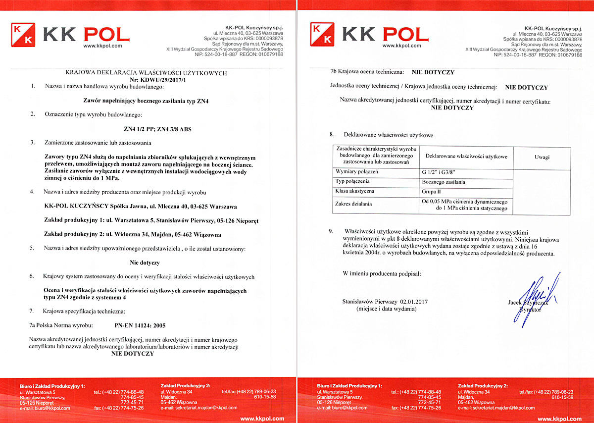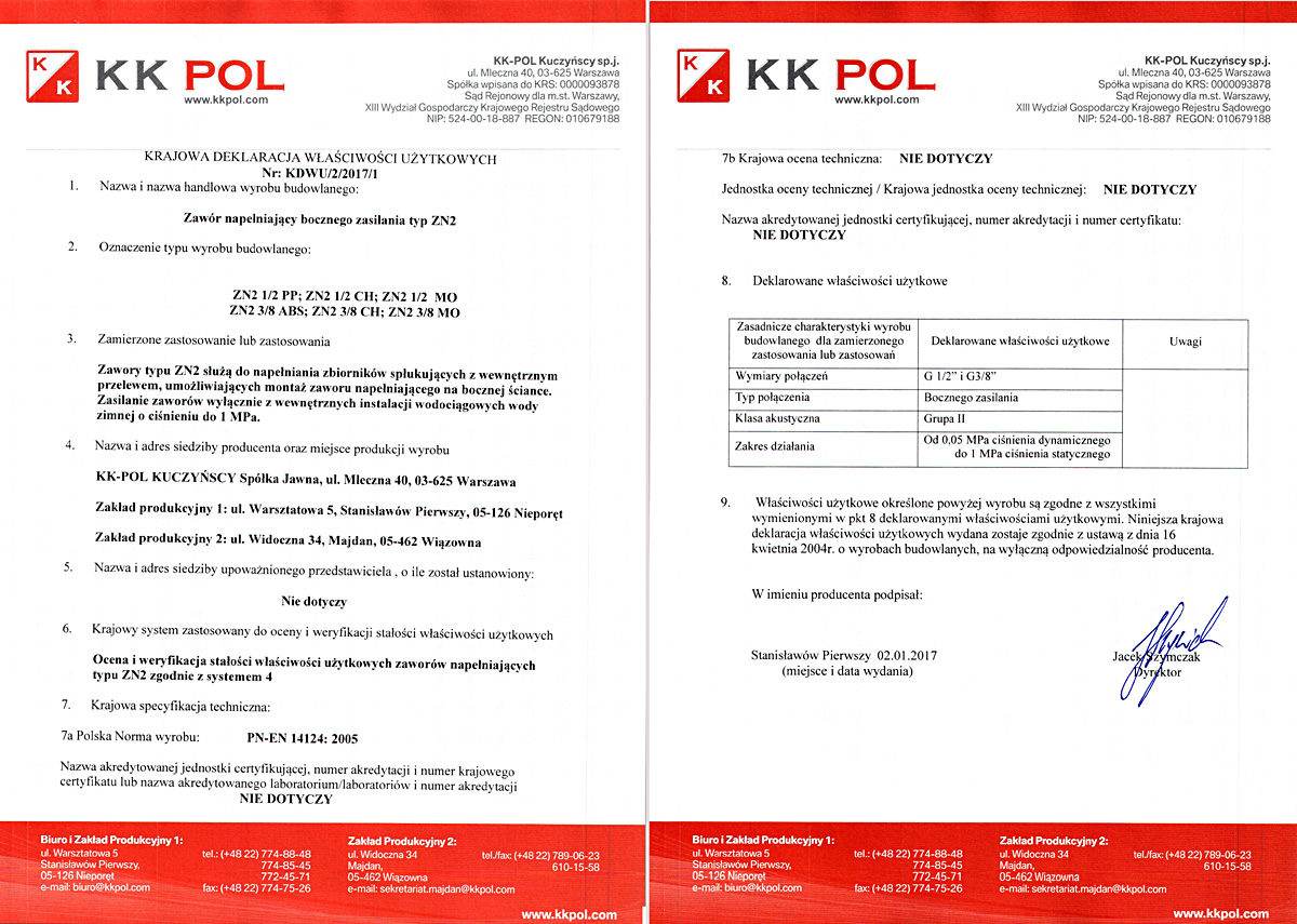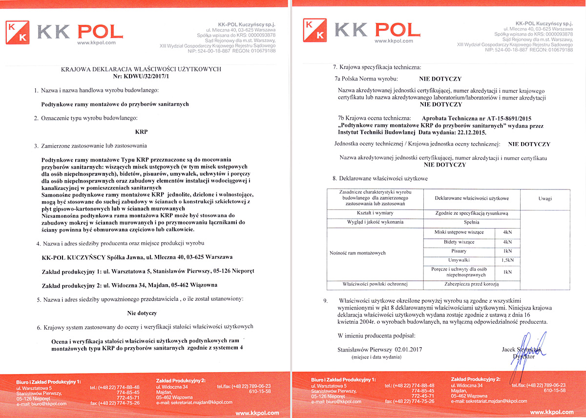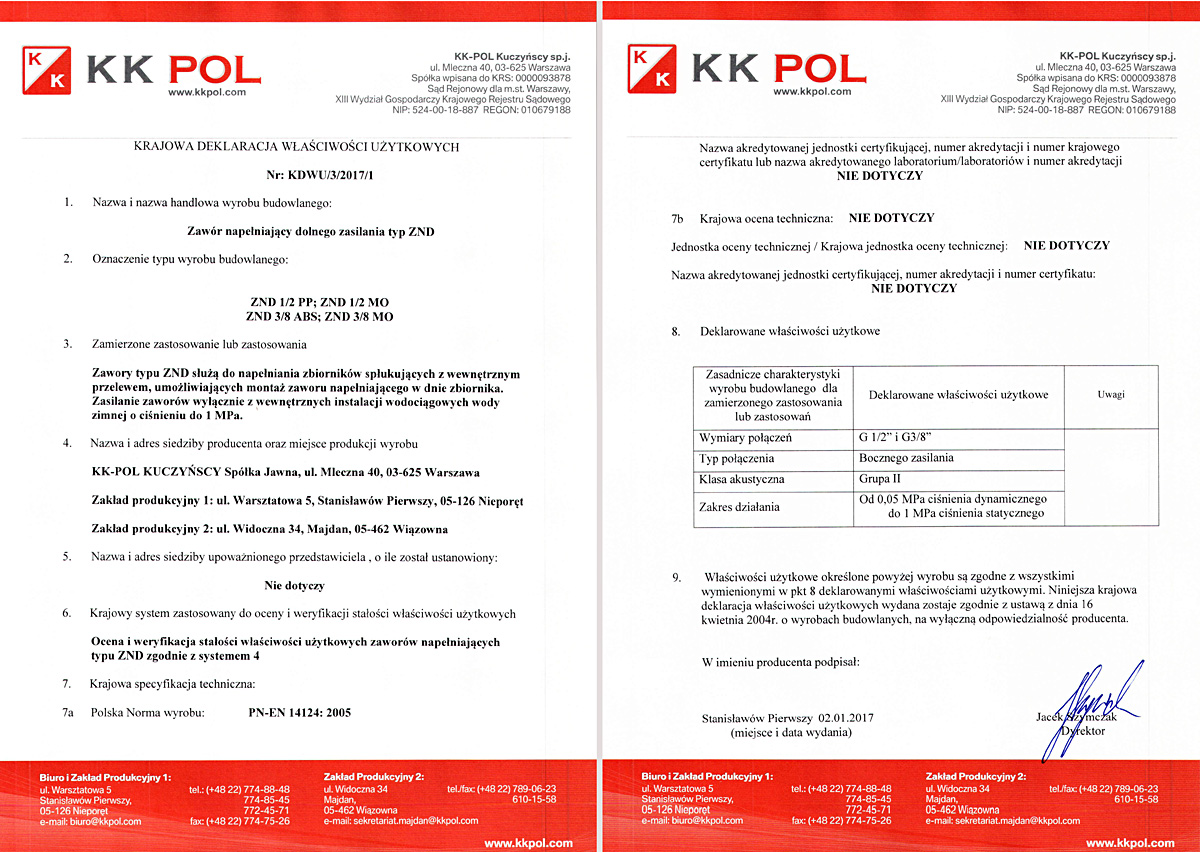 - National Declaration of Performance No: KDWU/32/B/2023/1