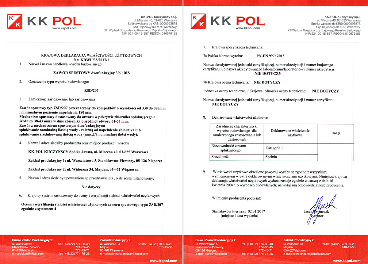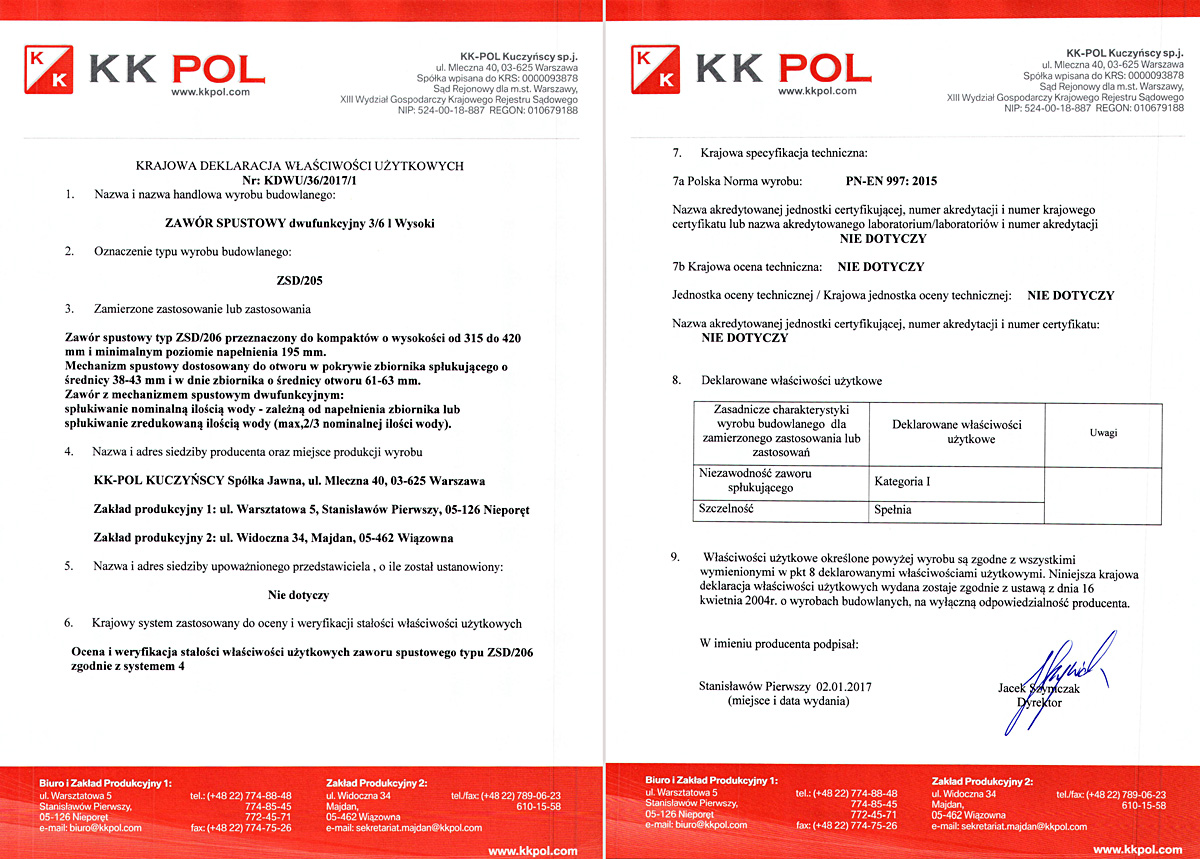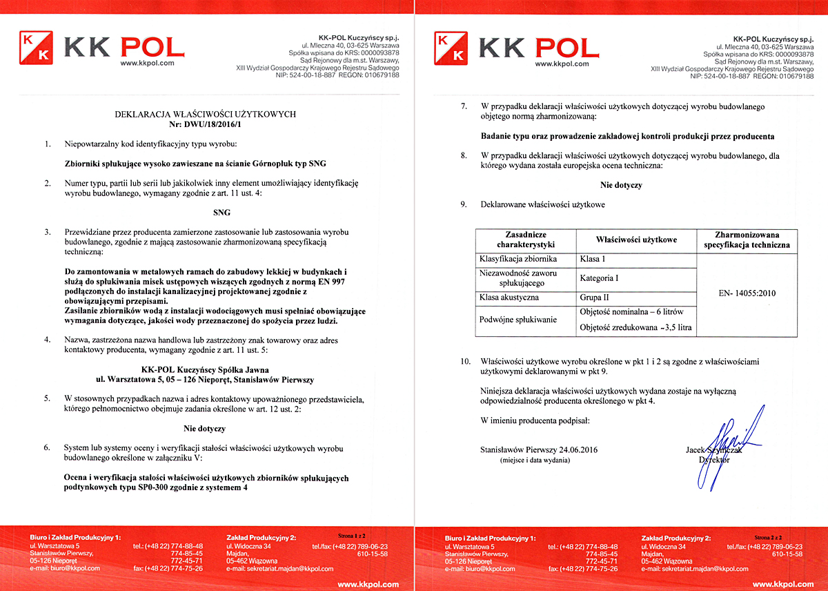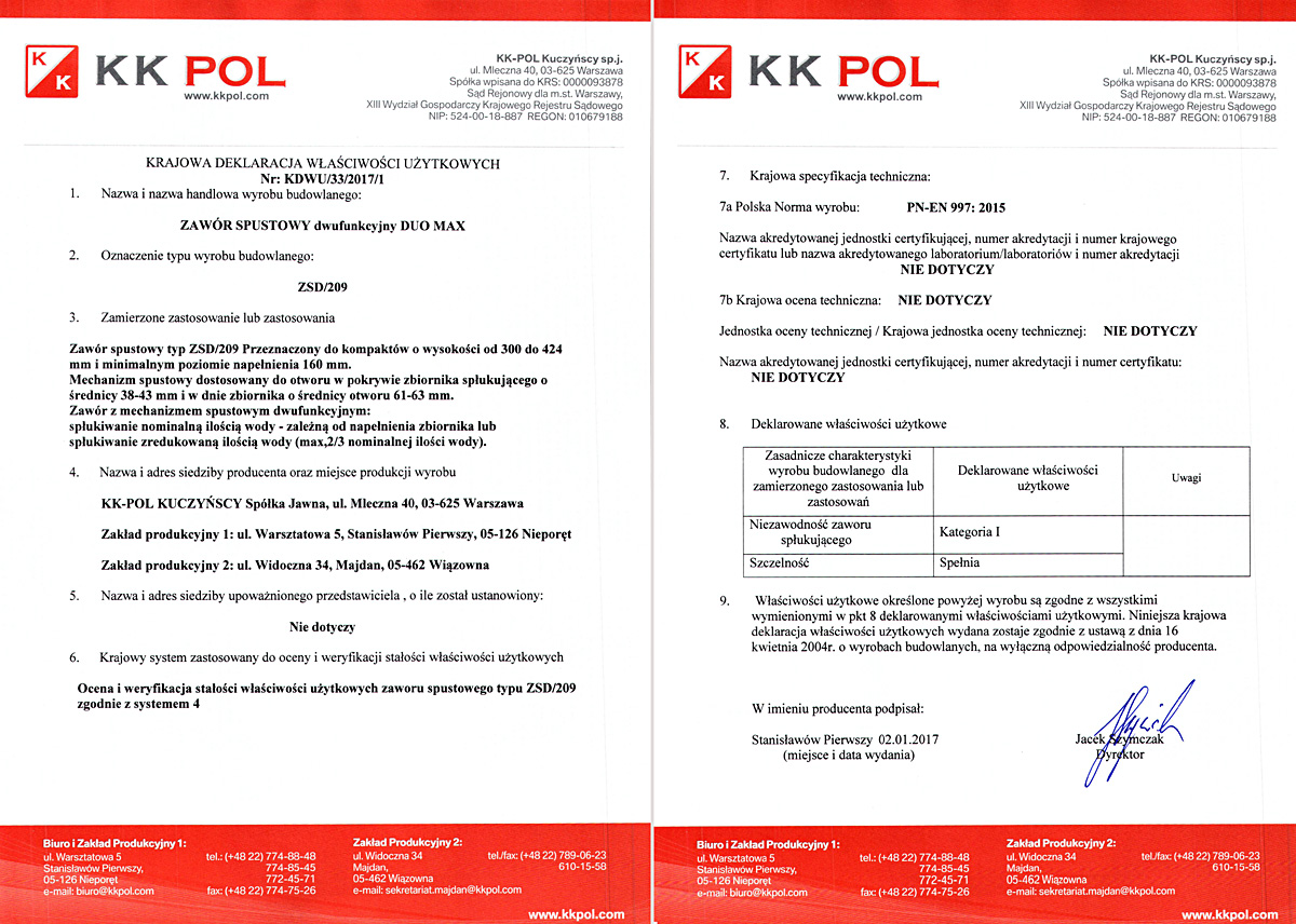 - National Declaration of Performance No: KDWU/32/N/2023/1