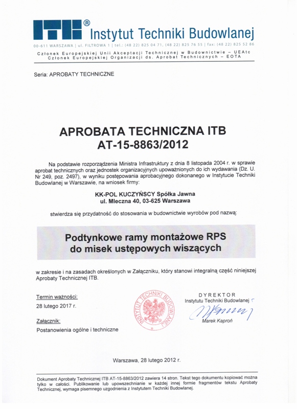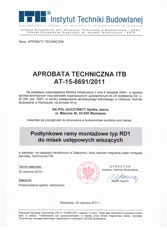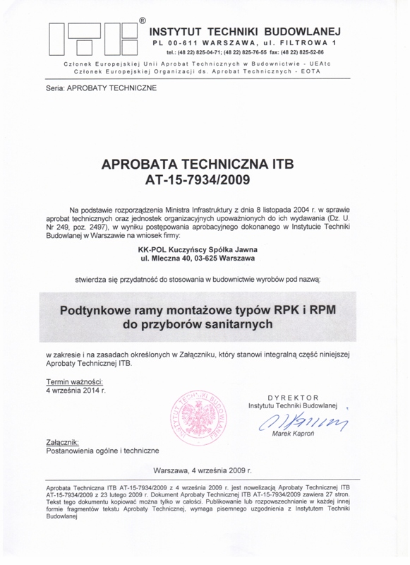 - Annex no 1 to the Technical Aproval AT-15-7934/2009